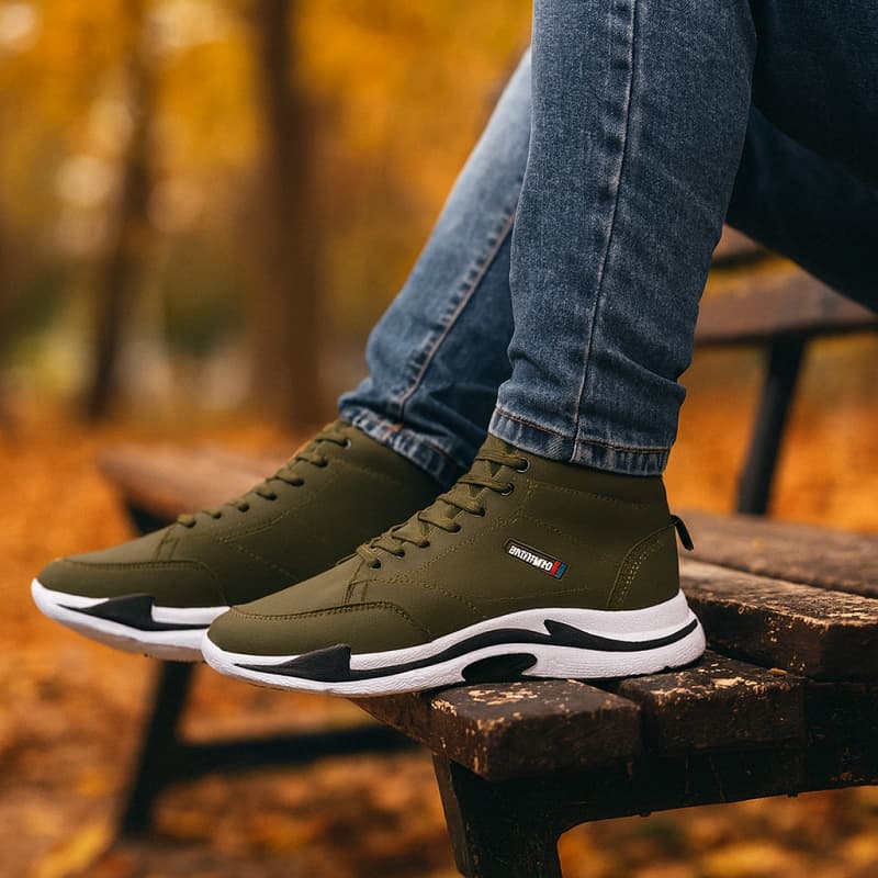 کفش ساقدار مردانه زیتونی مدل EMTO